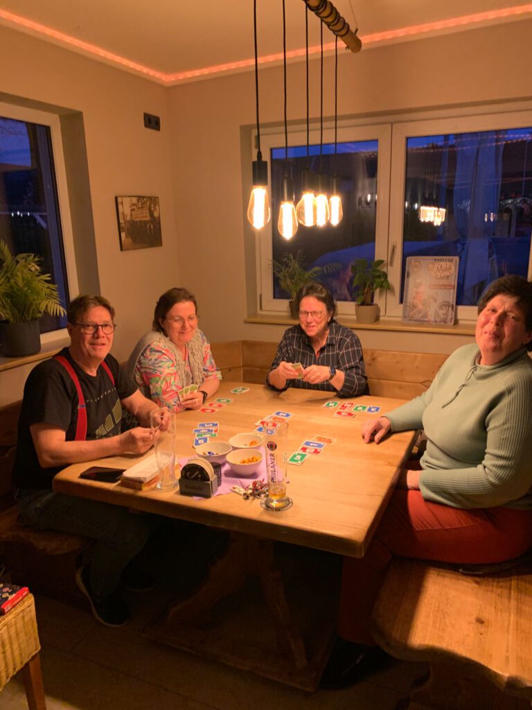 Zu späterer Stunde wurde in verbliebener Runde zusammengerückt und das Kartenspiel „Flip7“ gespielt.